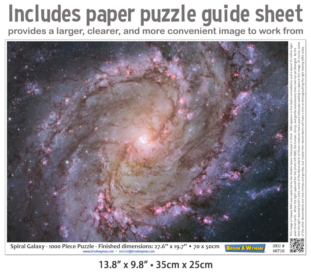Jigsaw Puzzle 1000 Pieces for Adults: This image of the M83 galaxy taken by the Hubble Space Telescope is nearly 28″ across. Our thick cardboard construction and high-quality paper laminate makes for a durable and beautiful puzzle image. Includes puzzle image insert to help you complete the puzzle without the box image.
